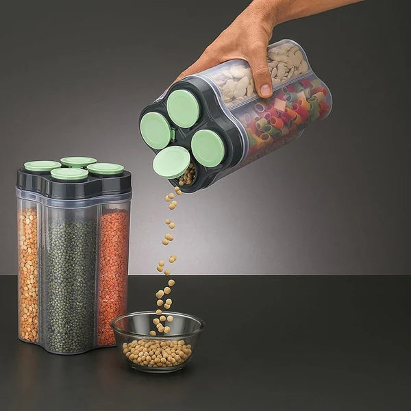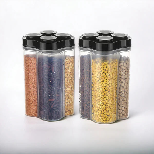 Versatile Storage: This food storage jar comes with 4 sections, allowing you to keep four different types of food in the same container without them mixing.