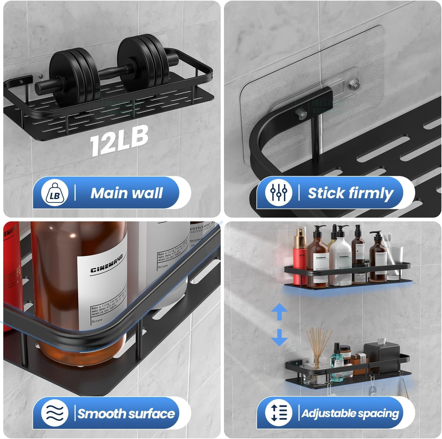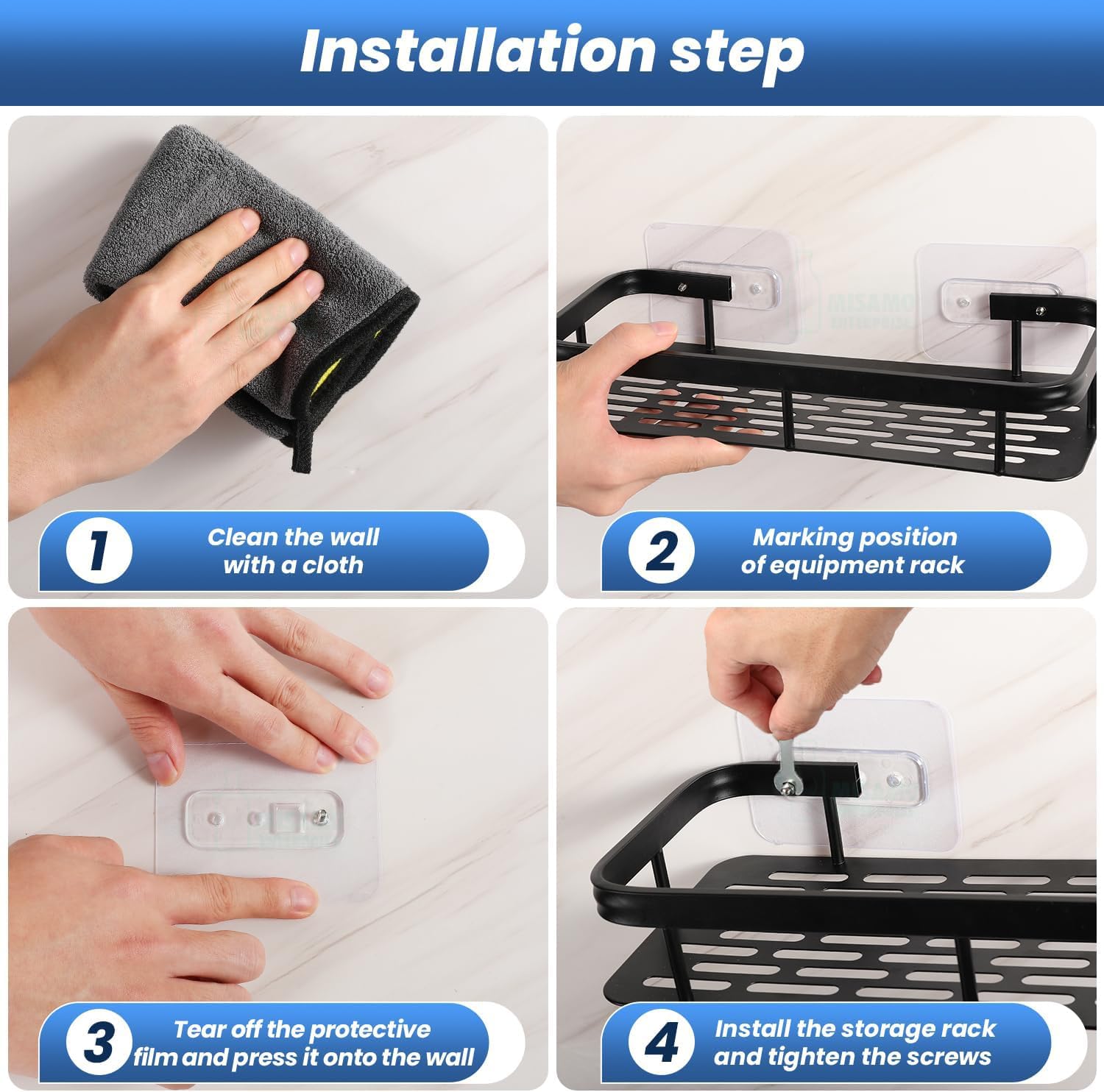 Premium Metal Home & Bathroom Wall Shelf Organiser, Black. -g
