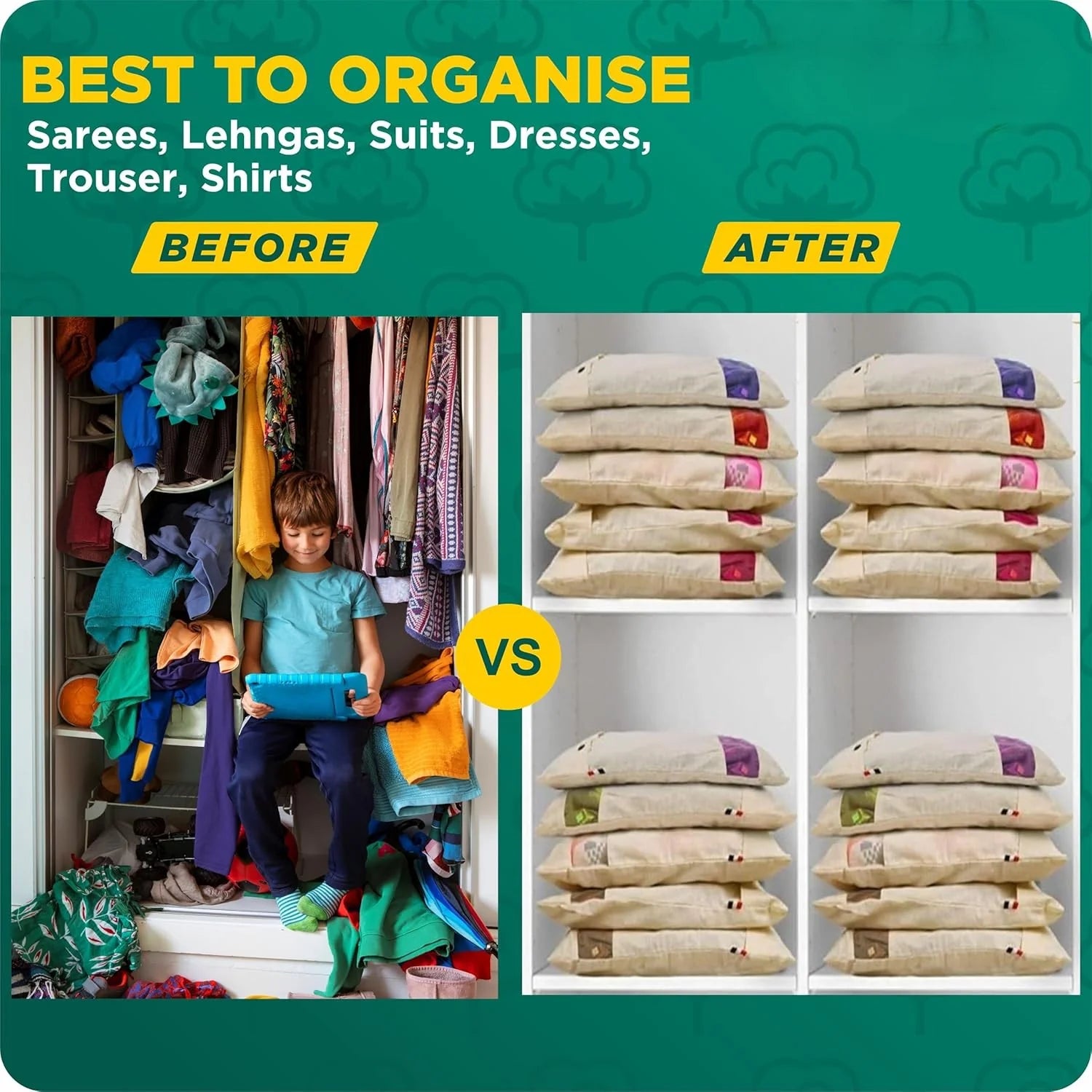 Keep your precious sarees safe, organized, and dust-free with our Premium Cotton Sari Covers. Crafted from high-quality breathable cotton, these covers are designed to preserve the elegance and freshness of your garments while adding a touch of sophistication to your wardrobe.
